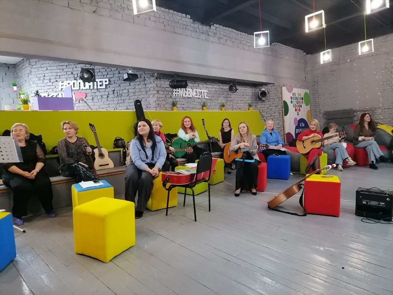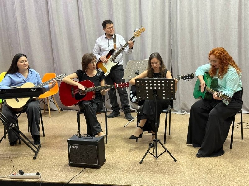 Спустя пару дней сцена «Октавы» зазвенела под гитарами взрослых учеников студии, которые волновались не меньше своих младших единомышленников. В тёплой дружеской атмосфере за душевными беседами и с любимыми песнями под гитары время летело незаметно. Украсили вечер задорные напевы баяна и лирические переливы фортепиано.